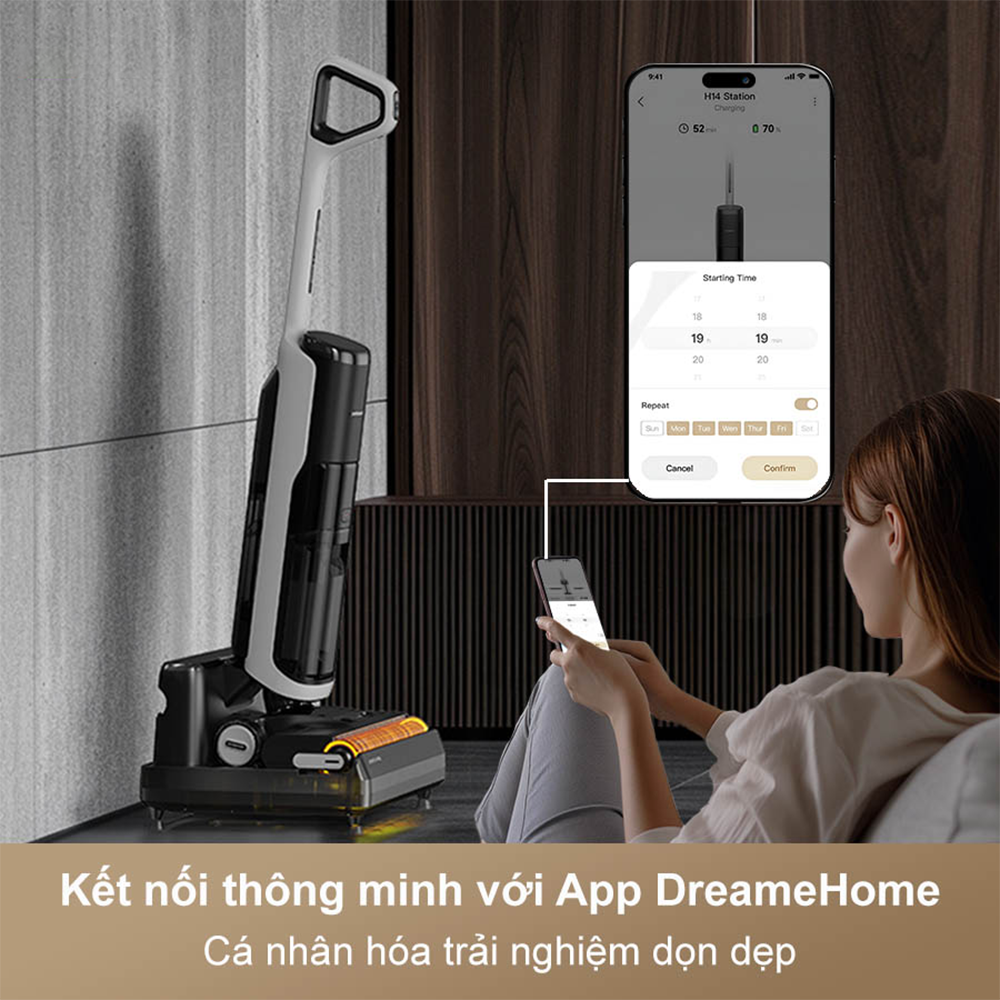 Thông qua ứng dụng DreameHome, bạn có thể theo dõi tình trạng máy, nhận thông báo bảo trì và tùy chỉnh chế độ hoạt động, mang đến trải nghiệm dọn dẹp tiện lợi và cá nhân hóa tối đa. Dreame H14 Station là trợ thủ đắc lực cho mọi gia đình, kết hợp sức mạnh hút vượt trội, khả năng kháng khuẩn và hàng loạt tiện ích thông minh, sẵn sàng biến việc dọn dẹp thành công việc nhẹ nhàng và thú vị hơn bao giờ hết.