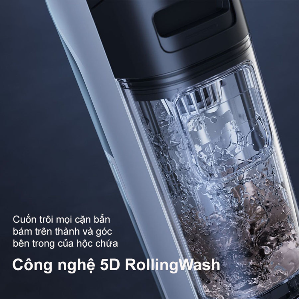 Dreame H14 Station được trang bị công nghệ RollingWash Tech™ mô phỏng cơ chế rửa và xoay 5 chiều của máy rửa chén, giúp cuốn trôi và đánh bật mọi vết bẩn cứng đầu bám trên thành và các góc bên trong hộc chứa, giữ cho máy luôn sạch sẽ và vận hành tối ưu. Tính năng này giúp người dùng tiết kiệm thời gian vệ sinh thủ công, đồng thời duy trì hiệu quả làm việc tối đa cho máy.
