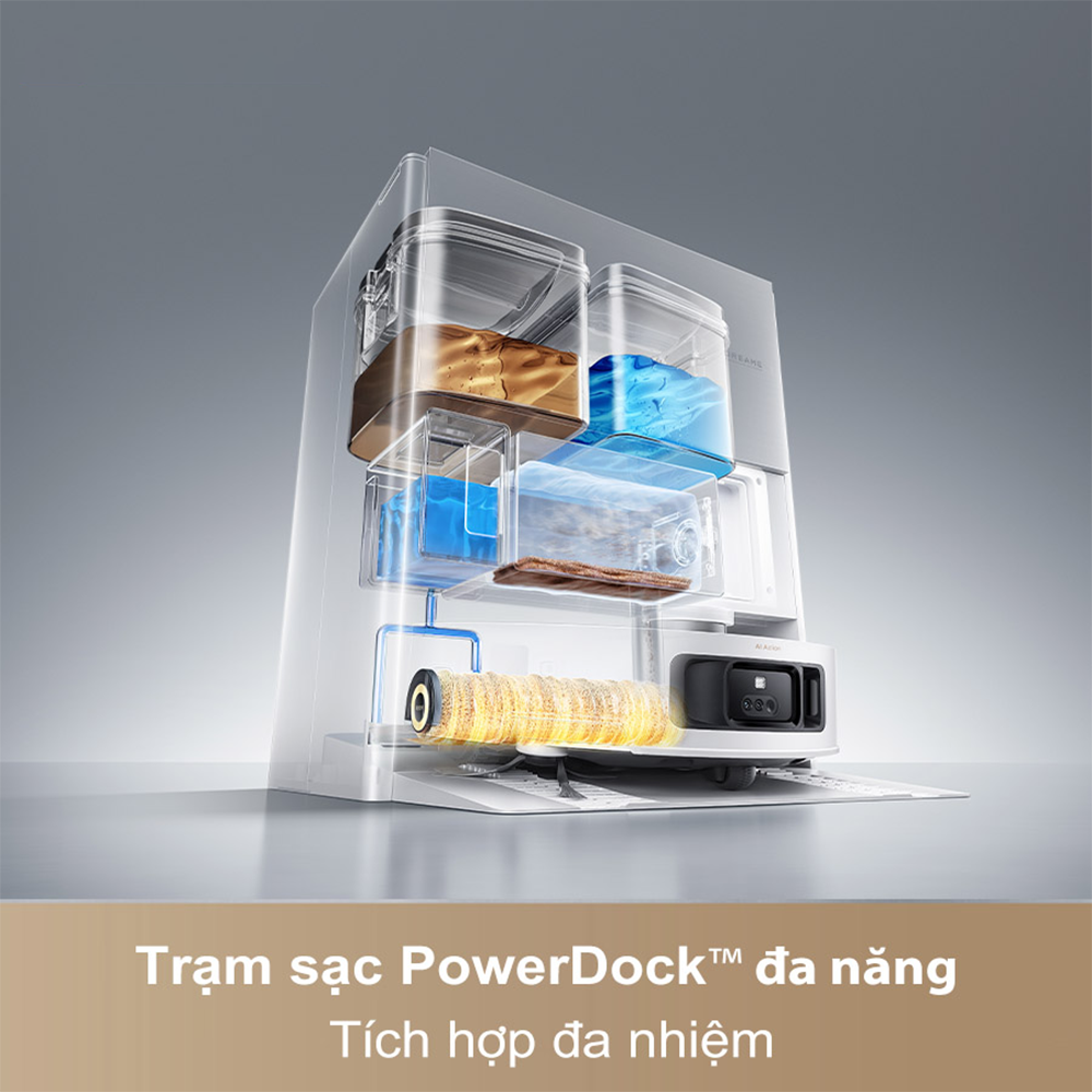 Trạm sạc PowerDock™ của Dreame Aqua10 Roller không chỉ là nơi nạp năng lượng mà còn là trung tâm chăm sóc toàn diện cho robot: