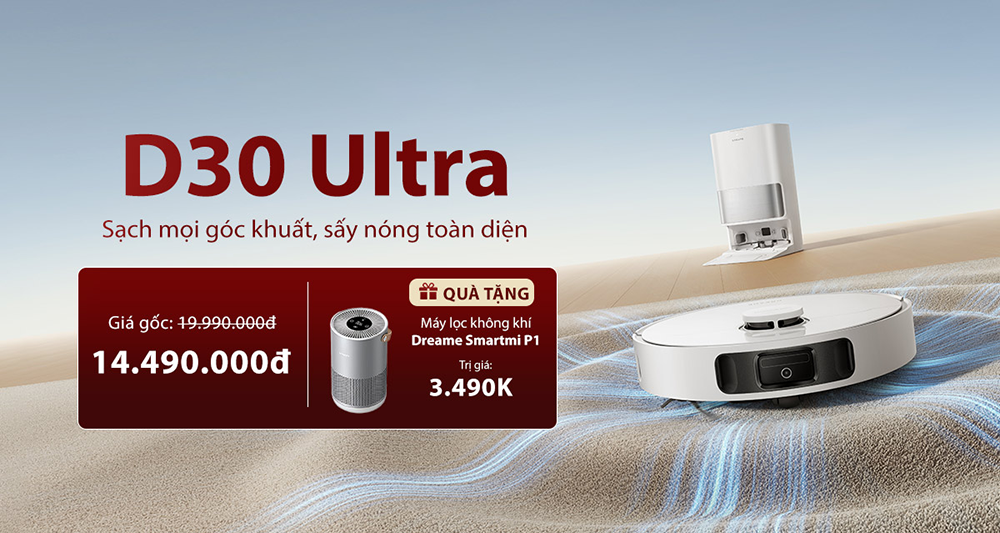 Robot hút bụi lau nhà Dreame D30 Ultra được phát triển nhằm mang lại trải nghiệm dọn dẹp hoàn toàn rảnh tay cho người dùng hiện đại. Sở hữu lực hút mạnh mẽ lên tới 25.000Pa, hệ thống giẻ lau mở rộng linh hoạt, khả năng tự giặt và sấy khô bằng khí nóng, thiết bị có thể xử lý hiệu quả từ bụi mịn, lông thú đến các vết bẩn cứng đầu trong từng góc nhỏ của ngôi nhà. Nhờ cơ chế tự động hóa gần như toàn bộ quy trình làm sạch, sản phẩm giúp tiết kiệm thời gian dọn dẹp, đồng thời duy trì không gian sống luôn sạch sẽ, khô thoáng và dễ chịu mỗi ngày.