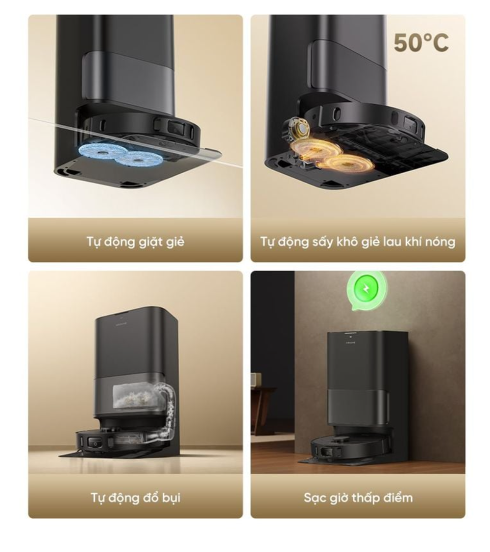 - Trạm sạc đa chức năng PowerDock: Tích hợp khay giặt tự làm sạch AceClean và khả năng tự động đổ bụi